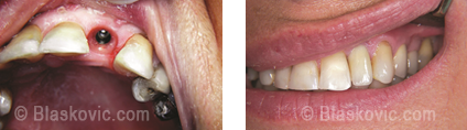 Implantati ponovo vraćaju narušenu estetiku. Krunica nad implantatom je neraspoznatljiva od okolnih prirodnih zuba, pogotovo danas kada možemo koristiti cirkonske nadogradnje i krunice koje mogu vrlo vjerno imitirati prirodan zub. Na raspolaganju imamo i porculan u roza boji za imitaciju zubnog mesa.