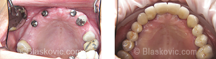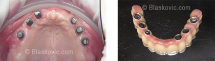 Čak i u slučaju potpune bezubosti implantati nude rješenje. Ugradnjom minimalno 4 do 6 implantata dobivamo nosače za fiksni most koji u ustima stoji fiksno zacementiran, bez potrebe za svakodnevnim vađenjem.