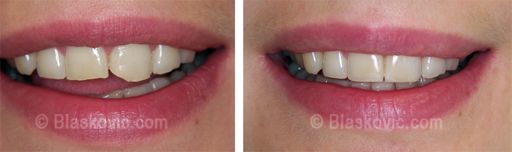 Kompozitni ispuni na gornjim centralnim sjekutićima prije i poslije